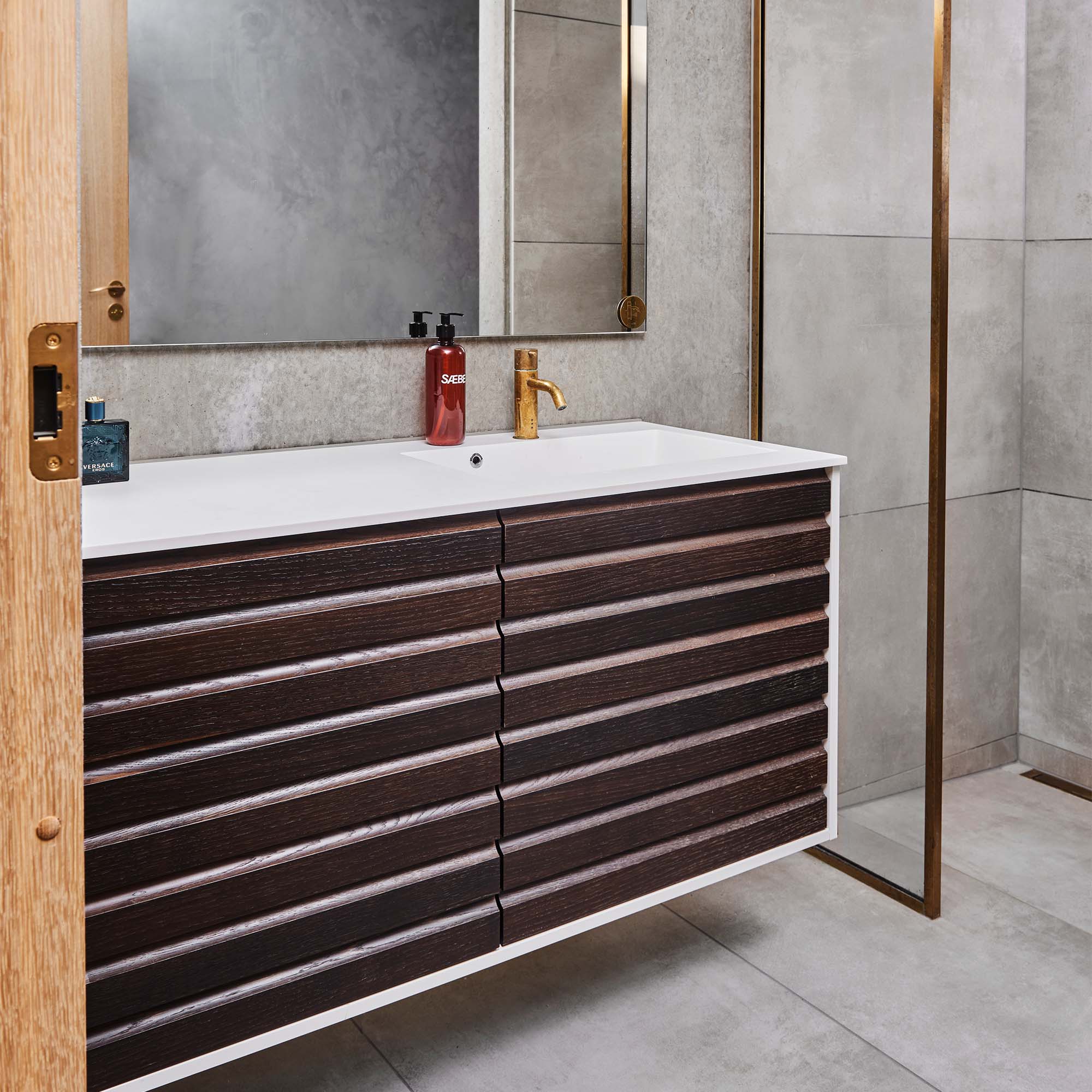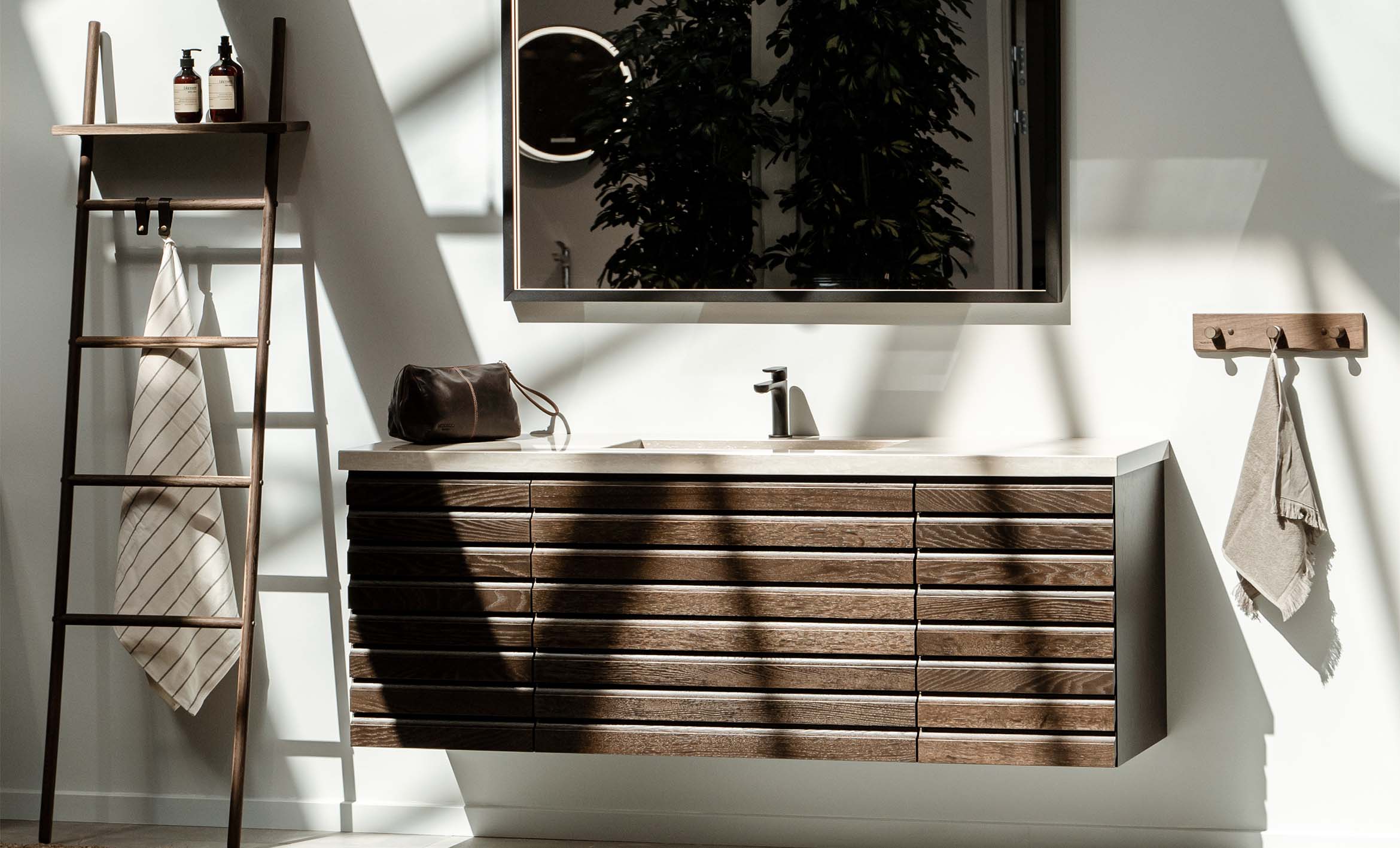 Nordisk design handler om at lade materialernes skønhed tale for sig selv, hvilket kan være en beroligende tilføjelse til dit badeværelse.