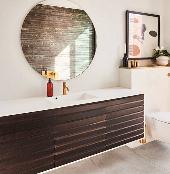 Du kan også vælge integrerede badeværelsesmøbler, som giver en følelse af sammenhæng i rummet.