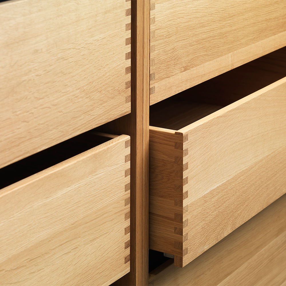 JKEs karakteristiske fronter med vandrette lameller er kvalitet fra inderst til yderst. De massive stave og bagplader er lavet af samme type træ, så kvaliteten er gennemført.
