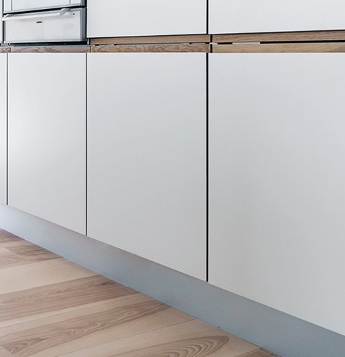 Det kan virke umuligt at forny den minimalistiske, grebsløse låge. For JKE er det lykkedes med Nordic Modern. En låge med trækanter og indfræset greb i massivt træ.
