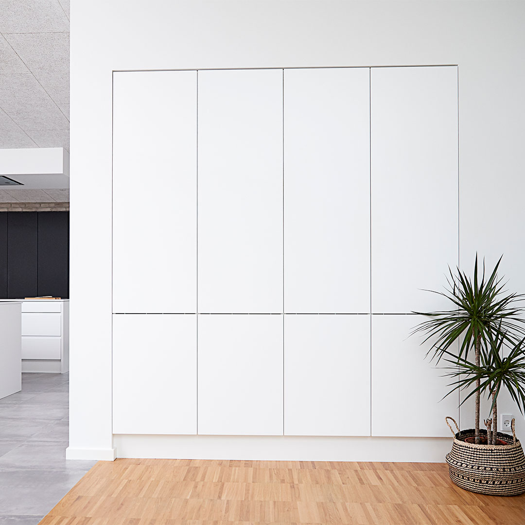 JKE tilbyder løsningen til at udnytte rummets loftshøjde fuldt ud. Bag dørene vil du opdage gennemtænkte løsninger til opbevaring og indretningsmuligheder tilpasset dine behov.