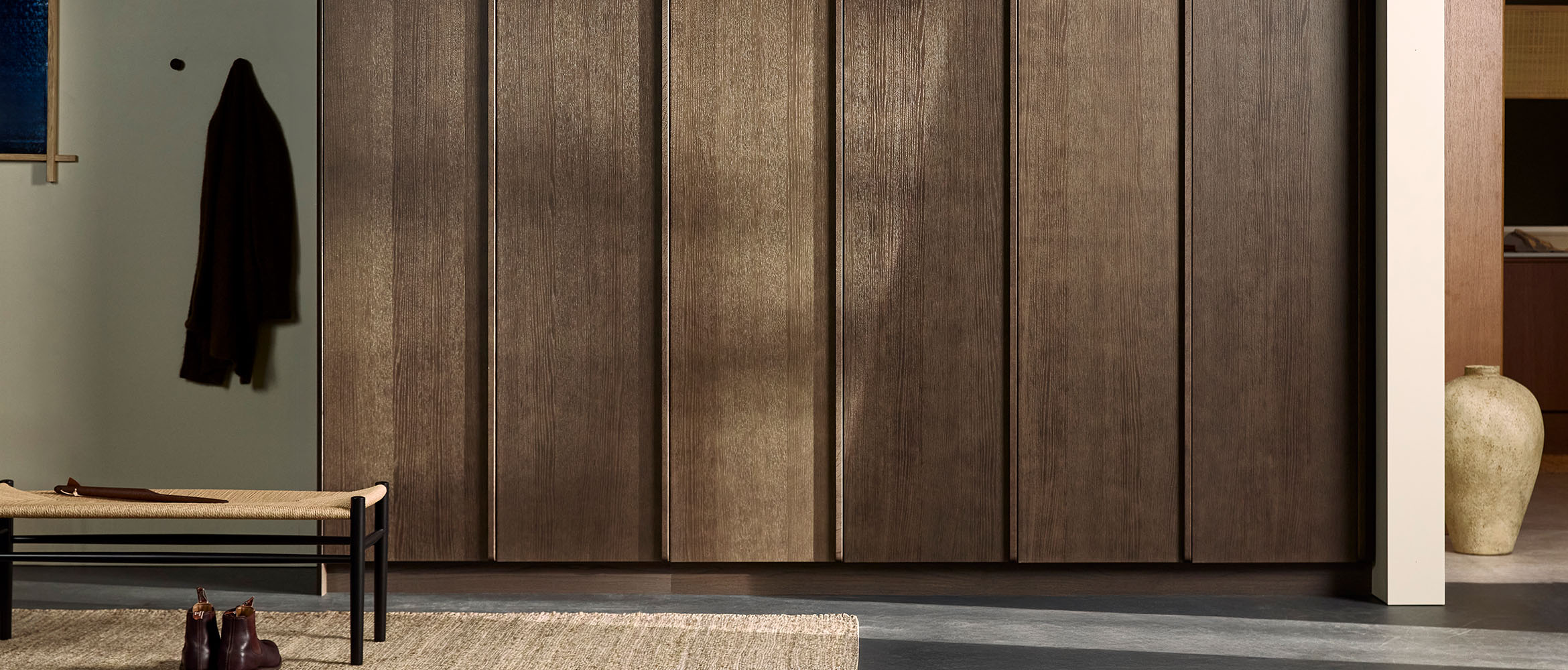 Garderoben i træ, varm og taktil