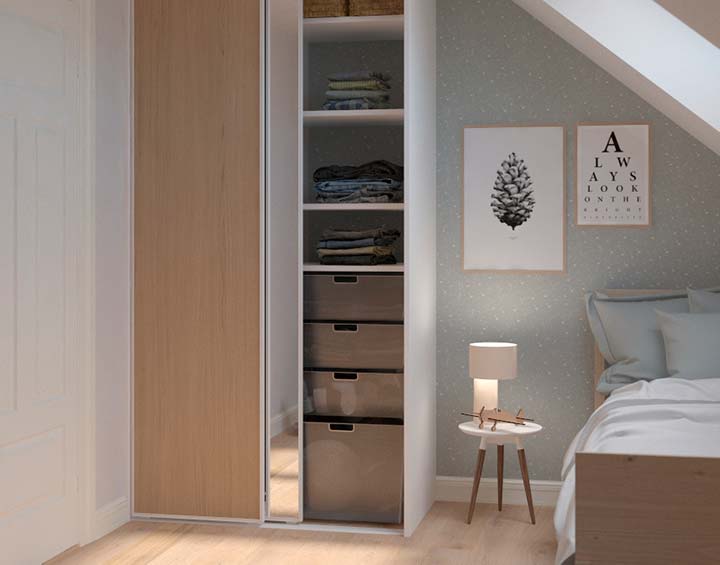 Skydedørsmodel i et enkelt og let design. En model som passer perfekt ind i de fleste af husets rum og som kan designes i de farver og i den stil du ønsker.