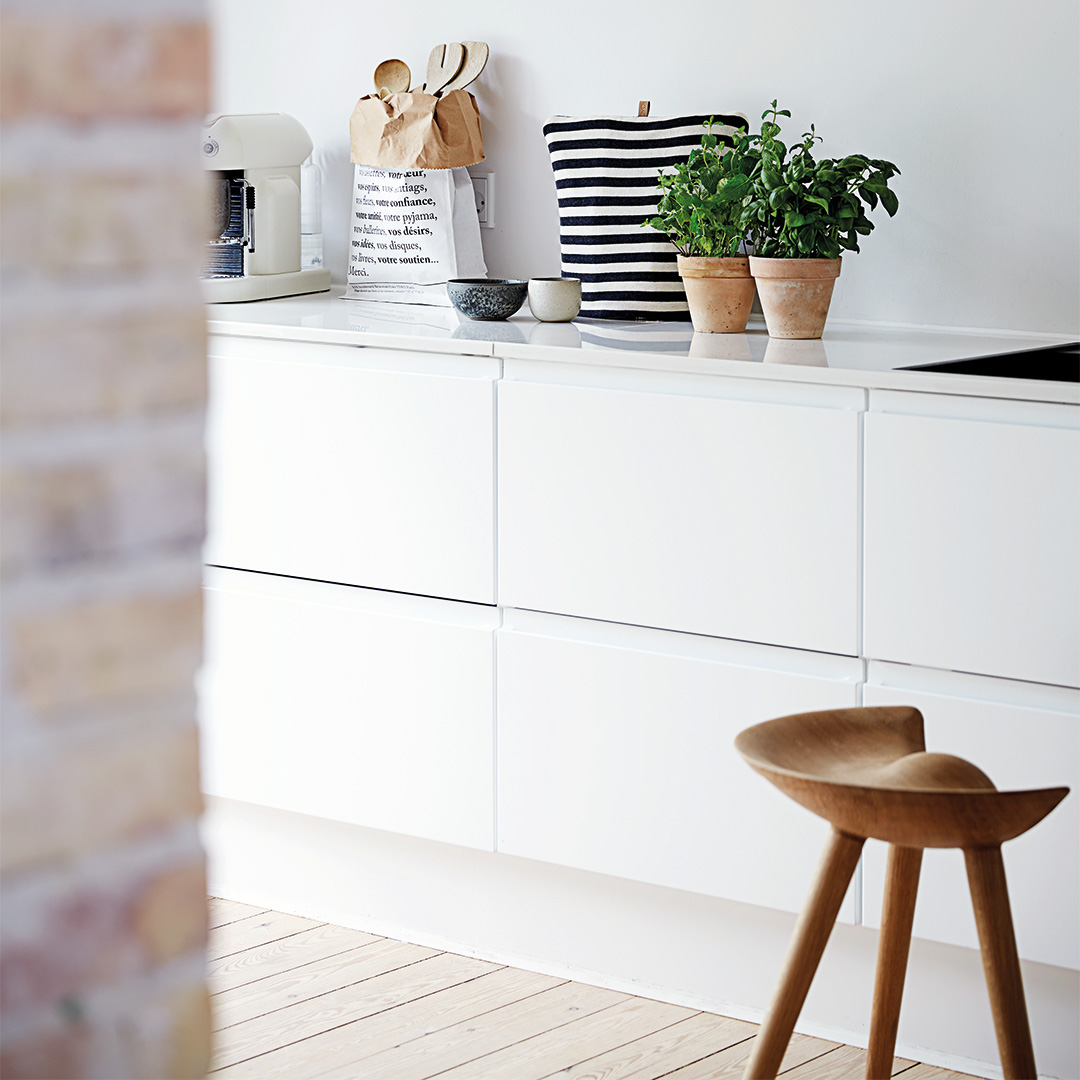 Køkkenstilen her er til dig, der værdsætter det klassiske og minimalistiske. Hvor tidløs elegance kan krydres med masser af personlige og farverige detaljer.