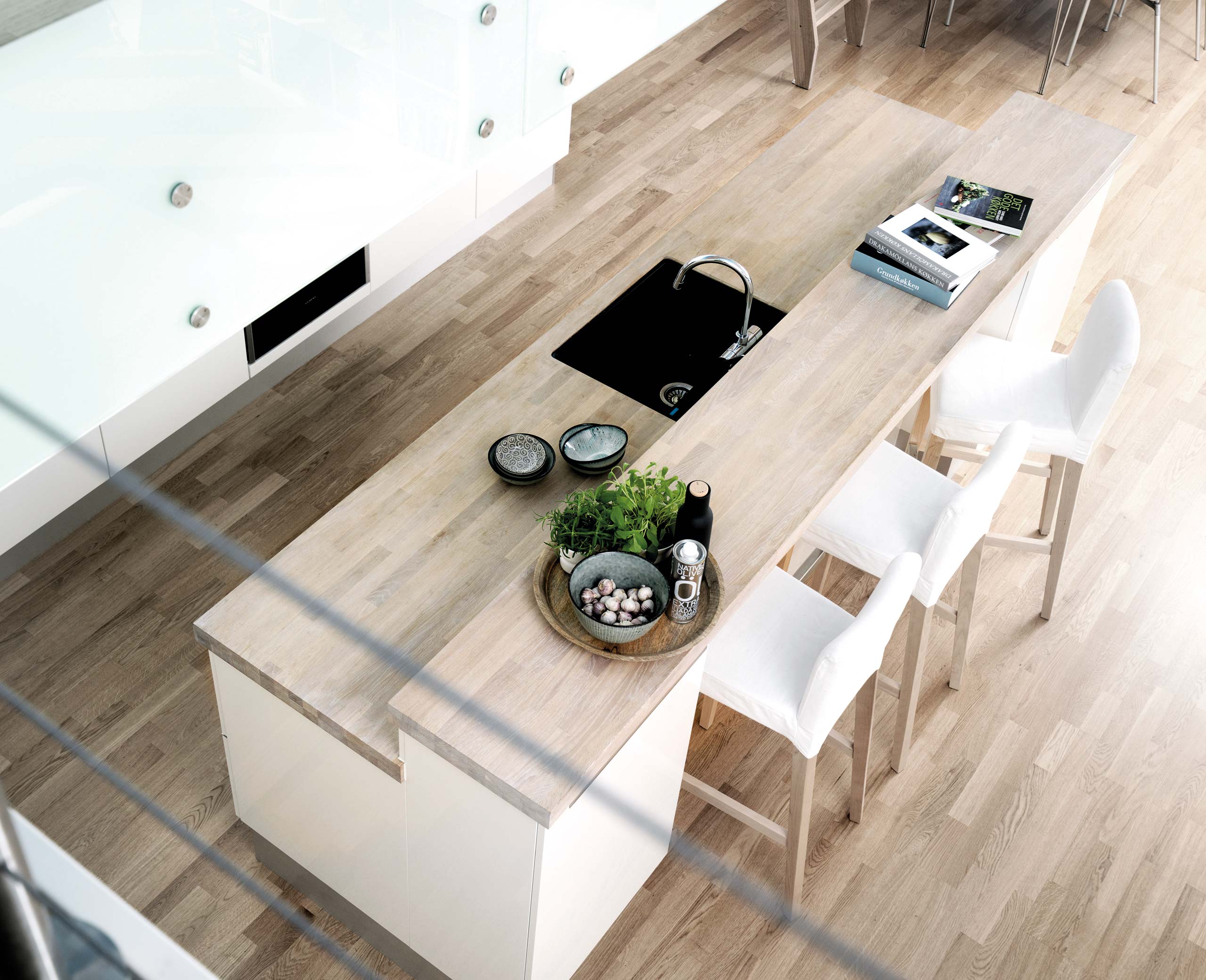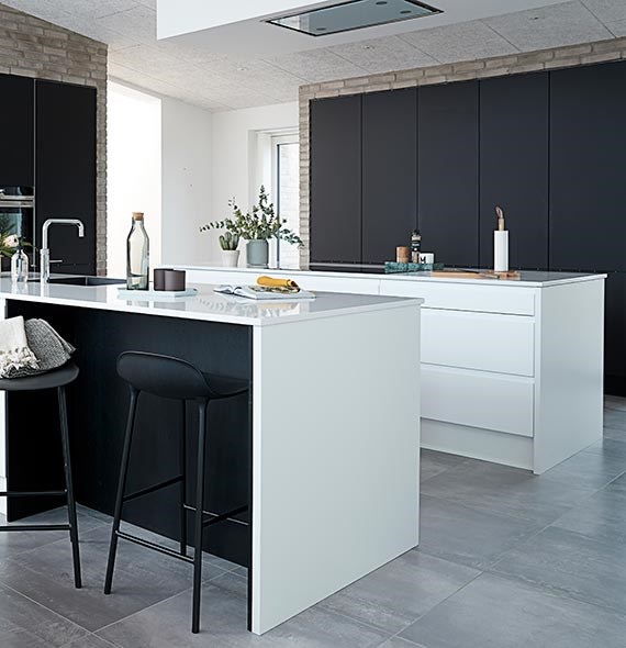 God plads er en luksus. Og det handler ikke nødvendigvis om, hvor mange m2 du har. Det handler om at udnytte dem så godt, at du får en følelse af lethed og rummelighed. Har du pladsen, giver en køkkenø – eller måske to, som her – plads til, at familie og venner kan lave mad sammen.