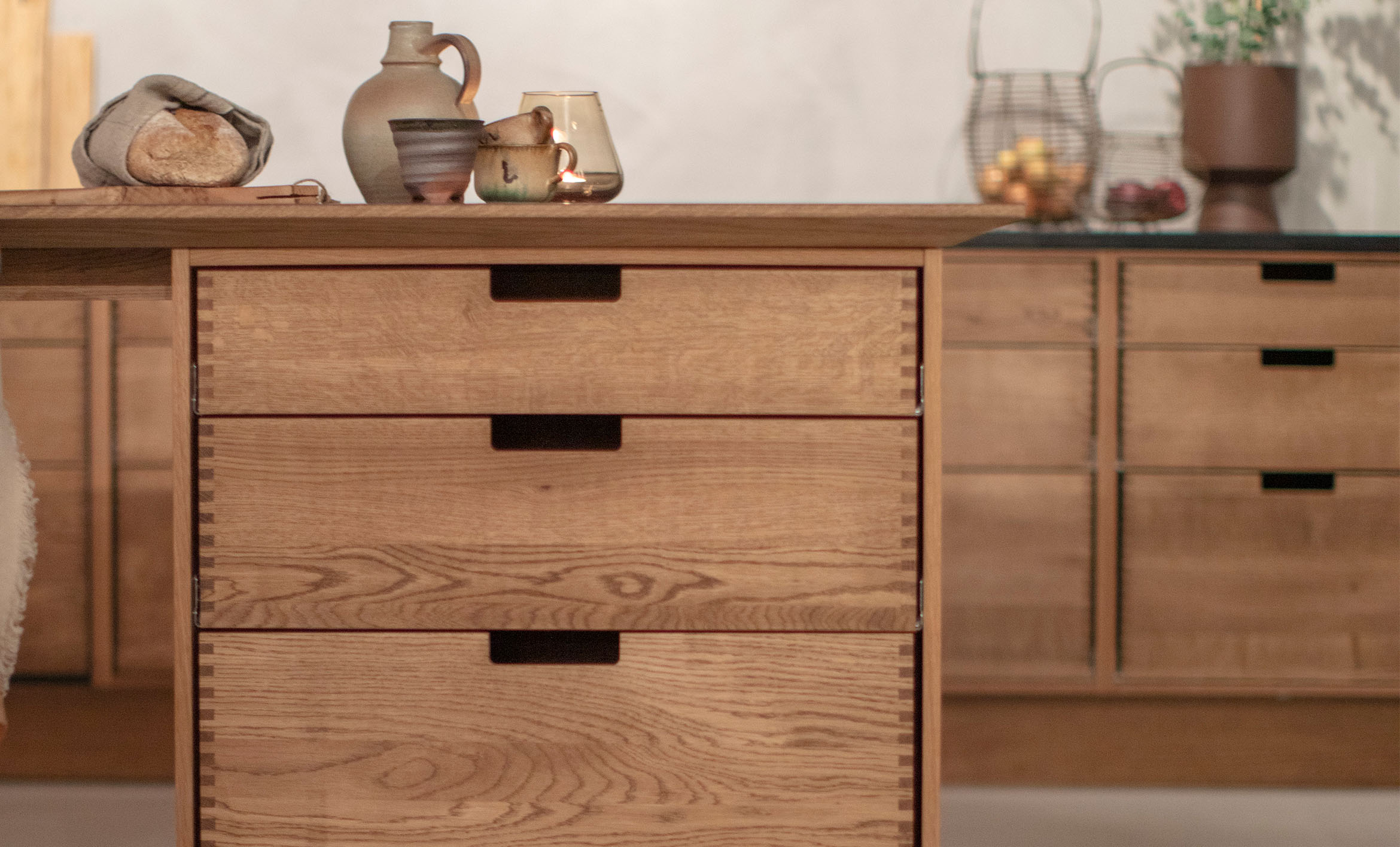 Hos JKE kombinerer vi fransk elegance med nordisk minimalisme for at skabe et unikt køkken. Materialerne og farverne er udvalgt for at fremhæve det franske look. Vores design skaber en hyggelig og indbydende stemning og med praktiske løsninger sikrer, at køkkenet fungerer optimalt i hverdagen.