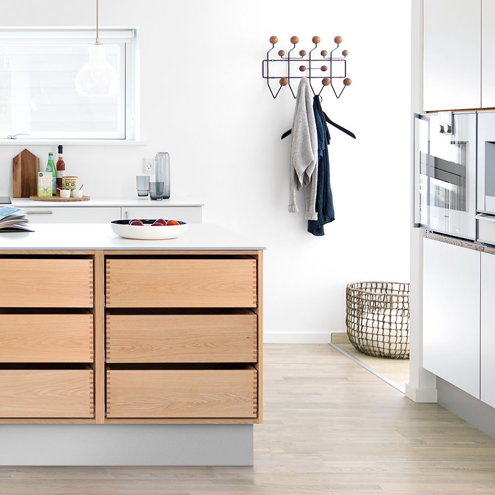 Vælg løsninger, der gør det muligt at integrere teknologi uden at gå på kompromis med det klassiske design. Indbyggede apparater og smarte opbevaringsløsninger kan diskret indarbejdes i køkkenet bag skabe og skuffers klassiske design.