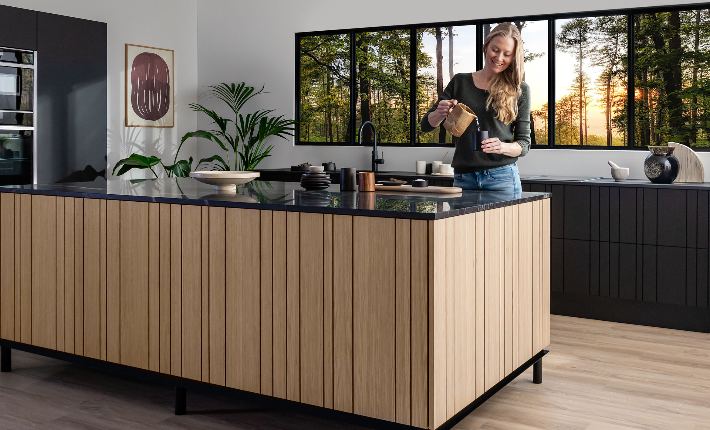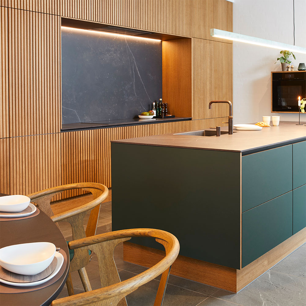 Hos JKE tænker vi helt naturligt bæredygtighed ind i alle vores køkkener – og vi har et klart mål om at vores køkkener skal blive grønnere for hver gang, vi designer et nyt. Allerede nu producerer vi på 100% grøn energi, når vi laver dit køkken.