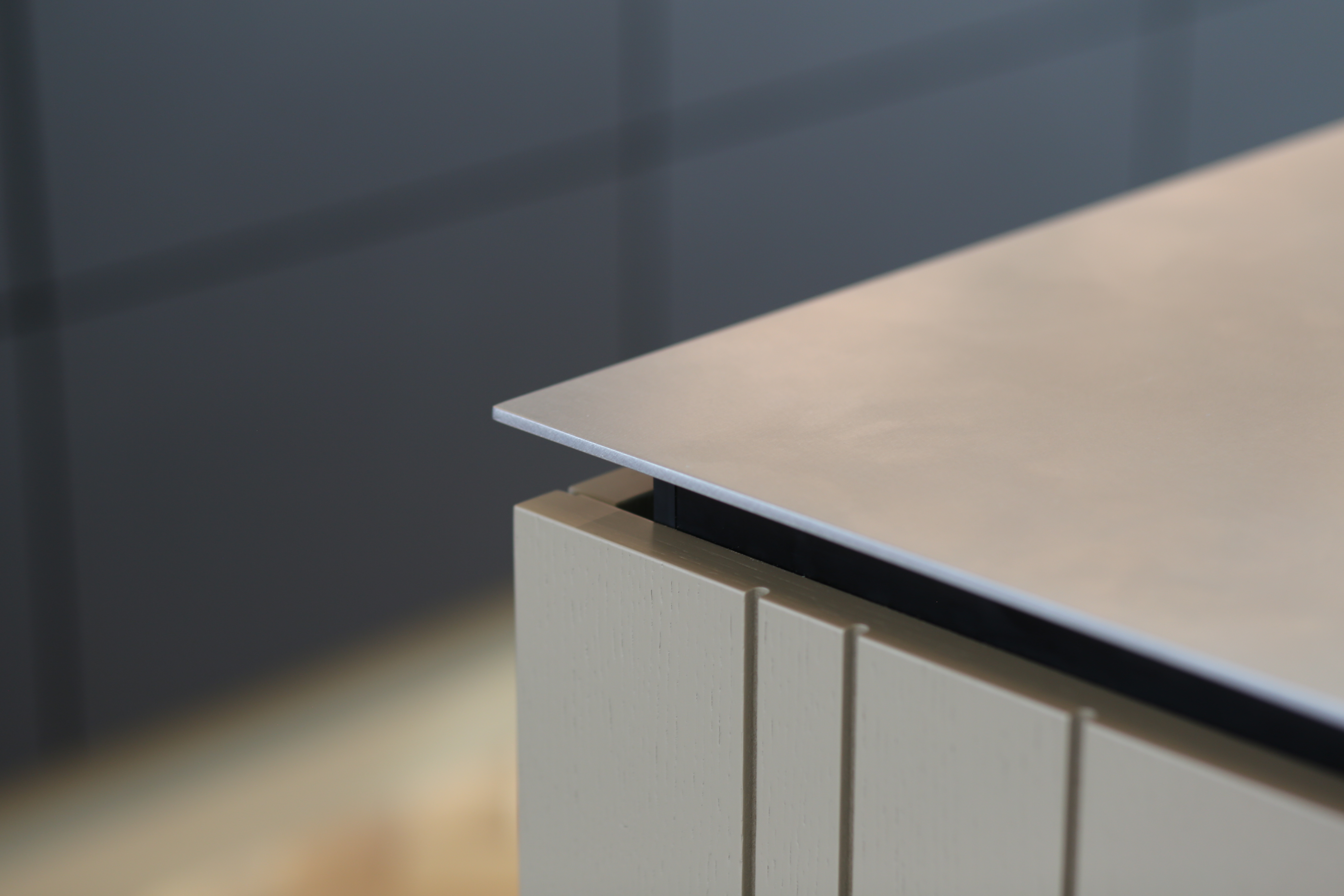 I modsætning til andre grebsfrie køkkener har Horizon ikke indfræsede greb i lågerne. I stedet har vi monteret en grebsskinne mellem skabe og skuffer. Det giver et stilrent design, hvor fronterne fremstår helt stringente og enkelte. Derfor egner Horizon sig godt til dig, der sætter pris på et minimalistisk hjem.