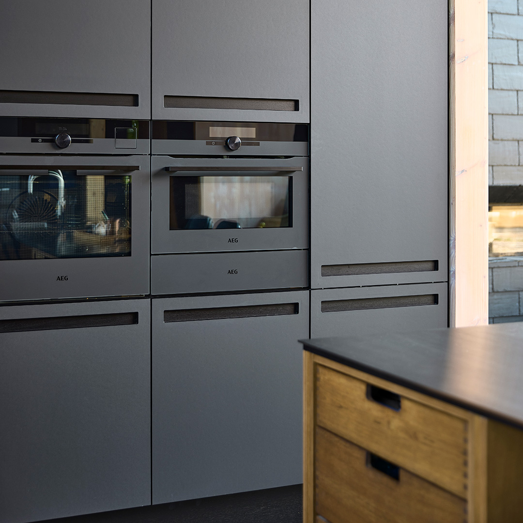 Fælles for dem alle er, at grebet er i massiv træ – en eksklusiv og funktionel detalje, som både understreger håndværket og definerer køkkenets design.