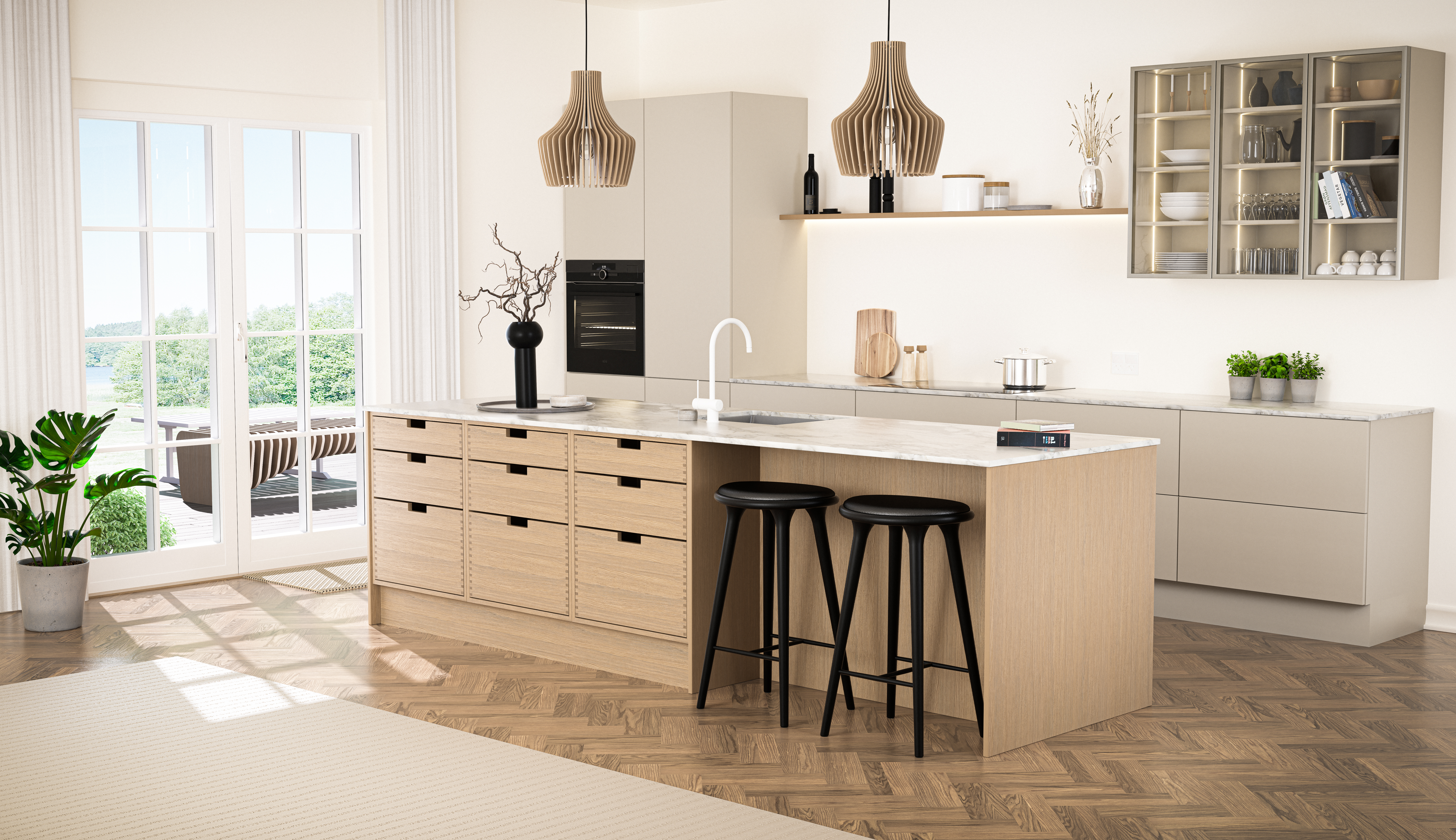 JKE Signatur omfatter underskabe og køkkenø i Nordic Silk. Derudover får du: