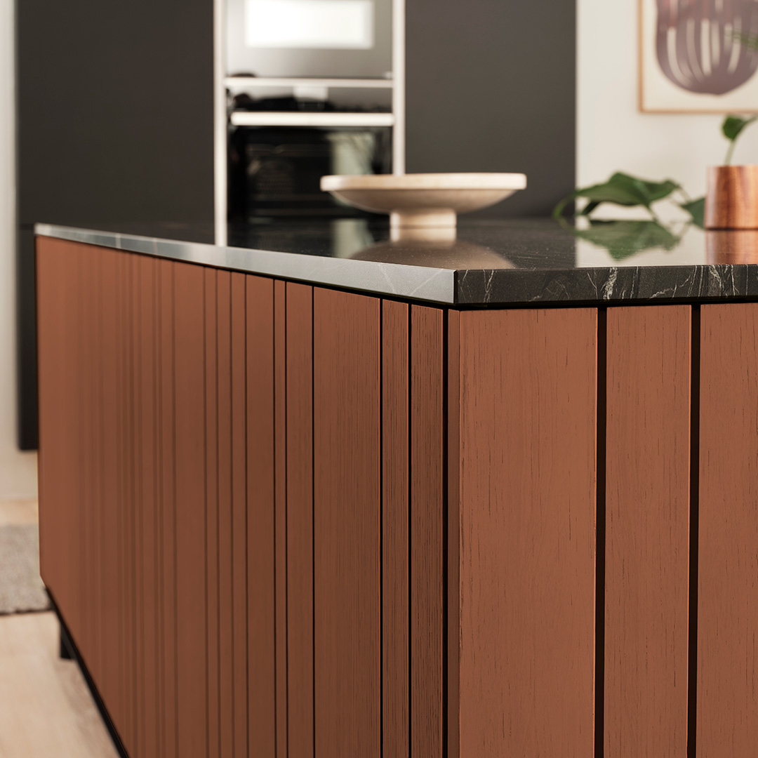 Nu kan du få dit køkken i smukke træoverflader i fire nye nordiske farver: Terracotta, Havblå, Rosmarin og Clay. Farverne er nøje udvalgt for at skabe en harmonisk balance mellem naturens varme og moderne design. Uanset om du ønsker en rolig atmosfære eller et karakterfuldt udtryk, giver vores nye farver dig mulighed for at skræddersy dit drømmekøkken.