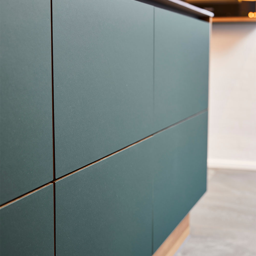 Du kan se, det er smukt. Men linoleum-fronternes fløjlsagtige blødhed er du nødt til at opleve in real life. Desuden har materialet fantastiske egenskaber som bæredygtigt, slidstærkt og lydabsorberende.