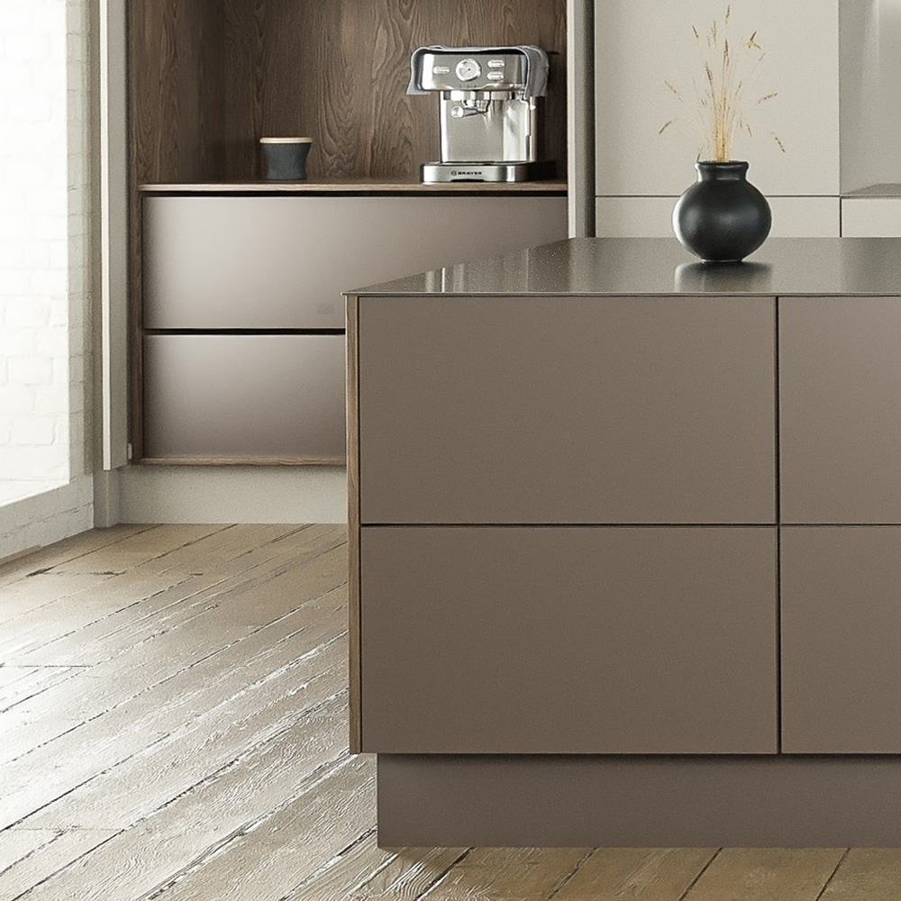 Linoleum kan fås til flere modeller, fra den glatte låge Nordic One, den grebsløse Nordic Inline eller de mere unikke modeller Nordic Modern med indfræset greb og Nordic Multifront med vandrette lameller.