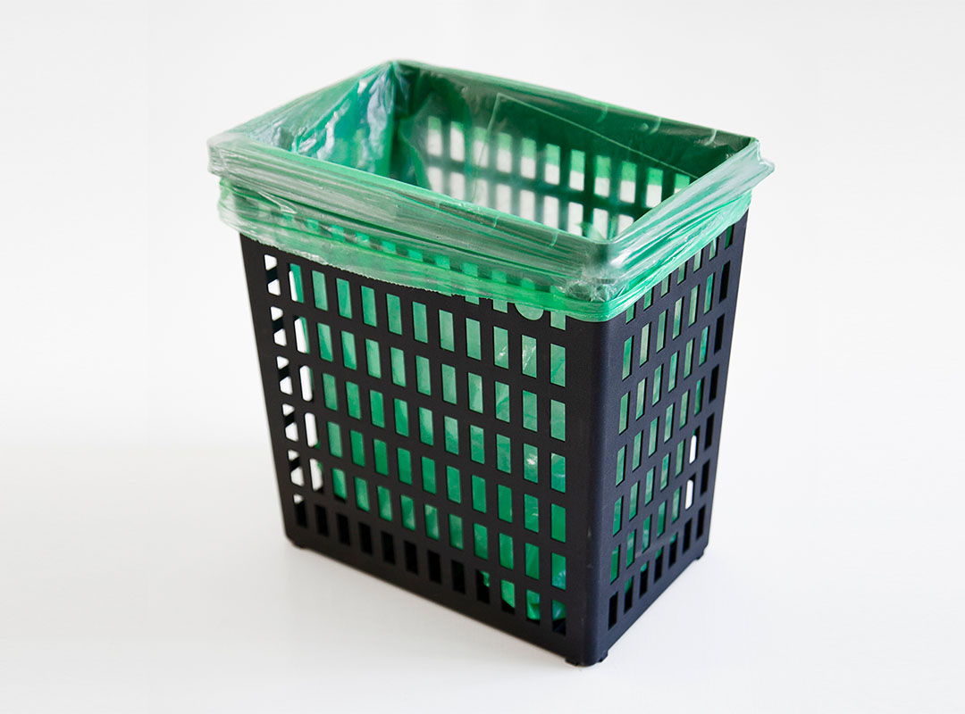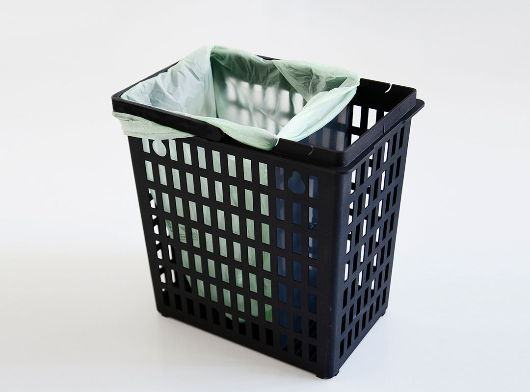 Miljøspanden kan benyttes sammen med alle typer poser og er tilpasset vores affaldssystemer.