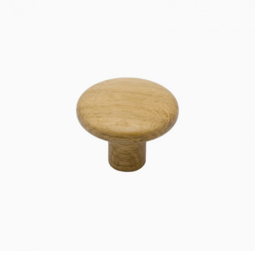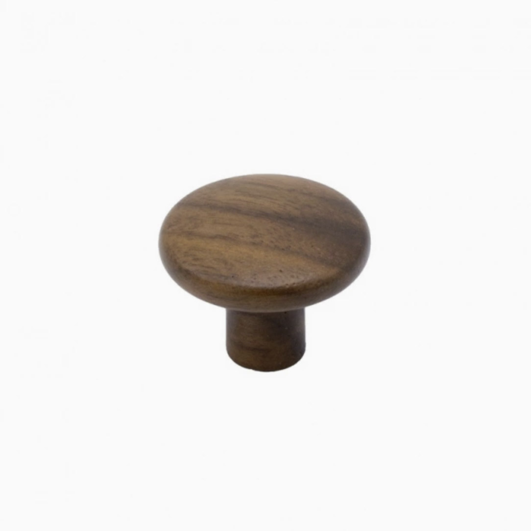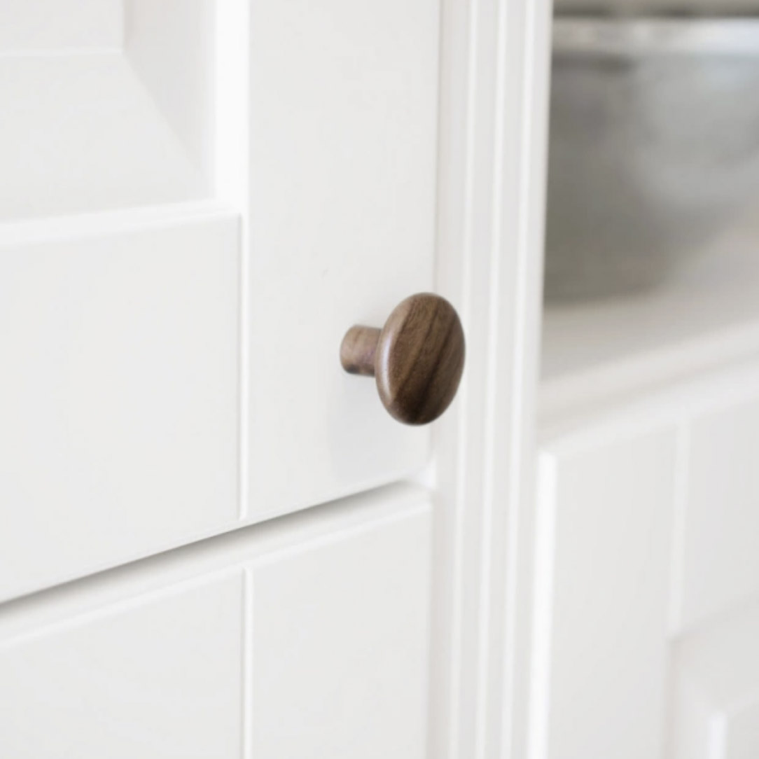 Stilren knop i træ til møbler, skuffer, låger og skabe. Fås i tre udførelser: sort, eg og valnød.