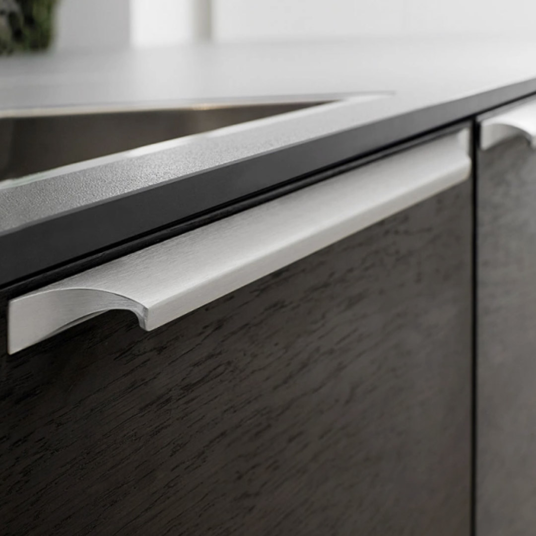 Tidløst aluminiums profilhåndtag i rustfrit look.