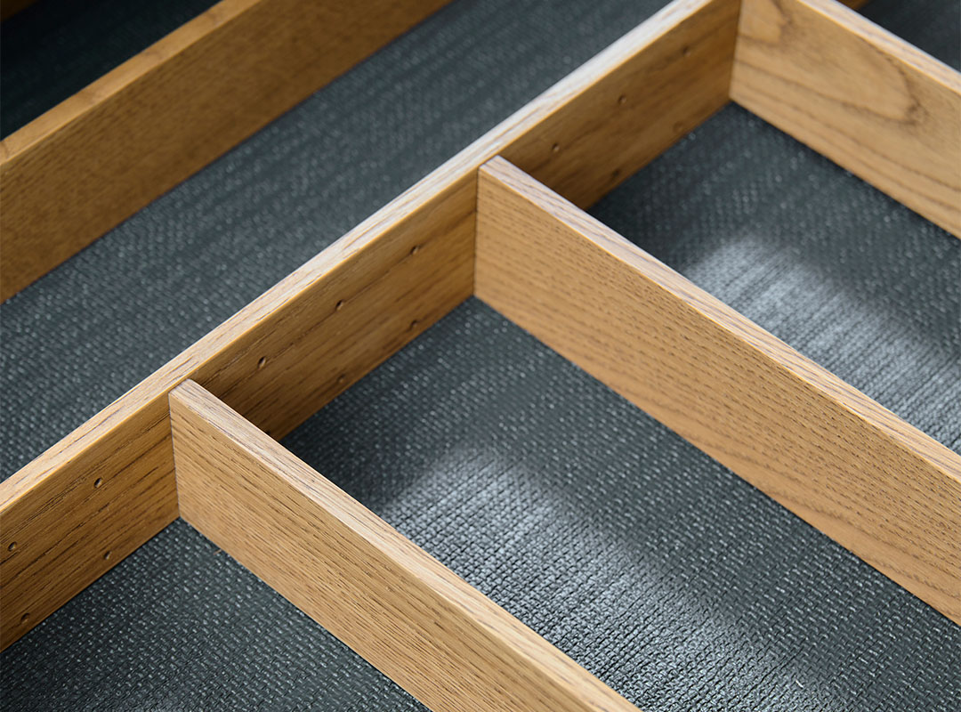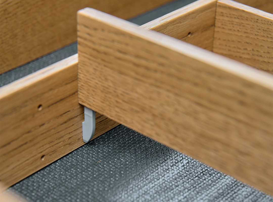 Skuffeinddelerne i egetræ passer perfekt til træskuffer.