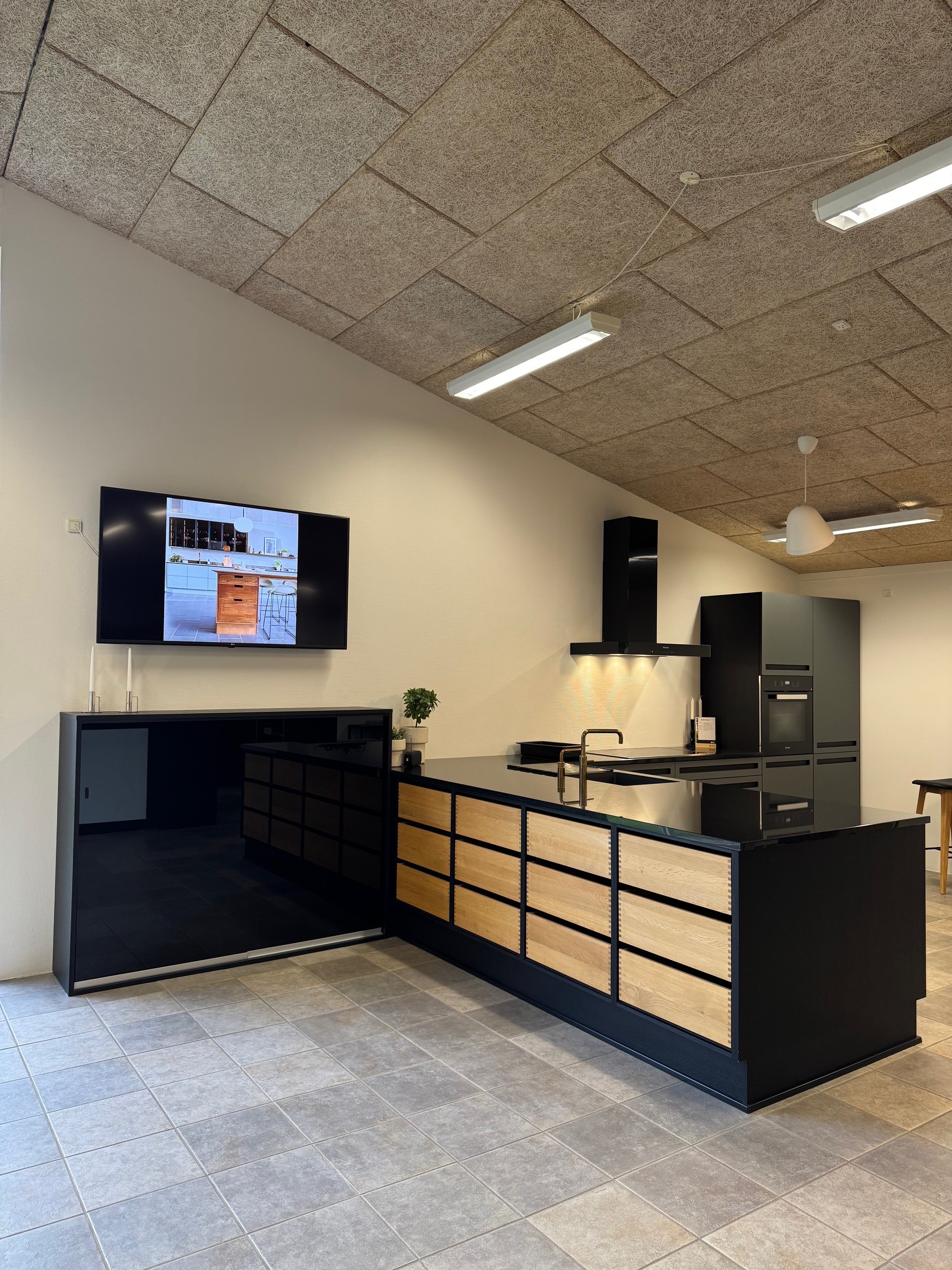 Inkl. Vitrineskab med sorte glas låger.