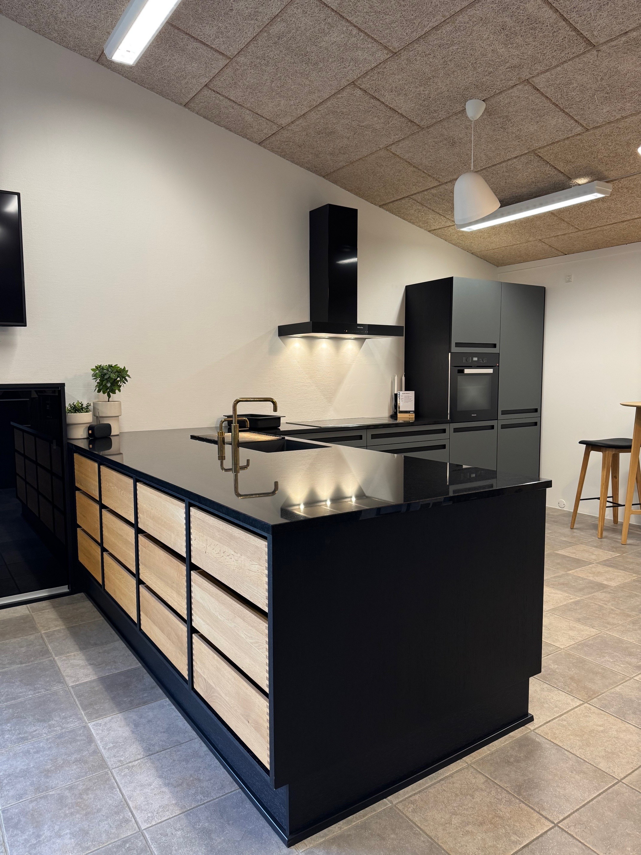 Miele hvidevarer og messing Quooker Twintaps.