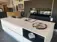 Nordic One line exclusiv. Komposit bordplade 20 mm Blanco Zeus poleret. White skuffer. Elegant køkken med højskabsvæg og køkkenø med koge og vaskeplads.